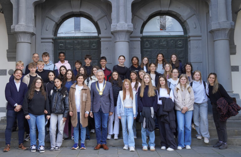 Anlässlich eines europäischen Schüleraustauschs empfing der stellvertretende Bürgermeister Dieter Honervogt Mittwochvormittag 16 Schüler*innen aus Pamplona zusammen mit ihren deutschen Austauschpartner*innen der Europa-Gesamtschule Delbrück und ihren Lehrerkräften im großen Saal des Rathauses.
